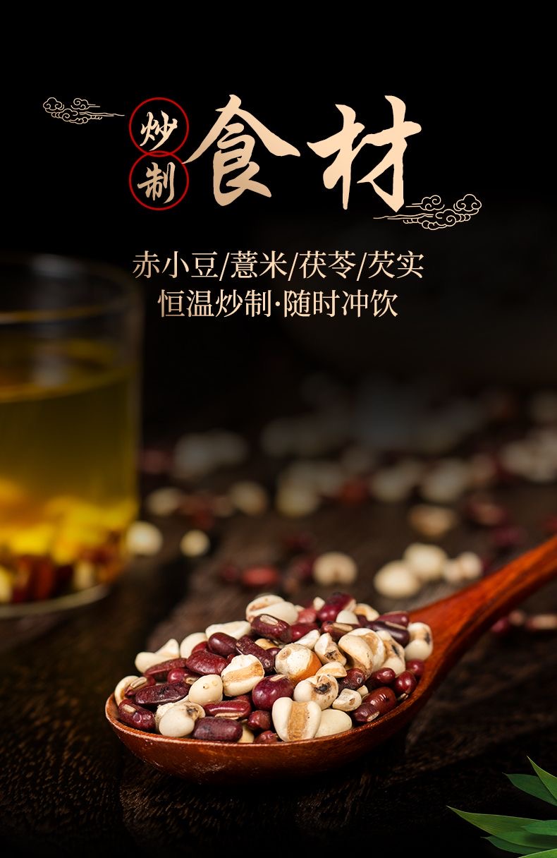 炒熟芡实赤豆薏米茶非祛湿茶红豆茯苓薏湿茶非去除湿气排养体寒毒